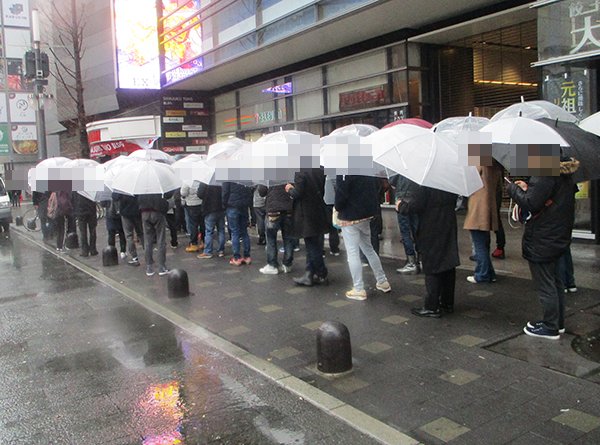 朝イチは悪天候であったにもかかわらず、約100名のプレイヤーが来店。開店時間にあわせて訪れるプレイヤーもたくさんおり、開店時間になると続々と入店していった。