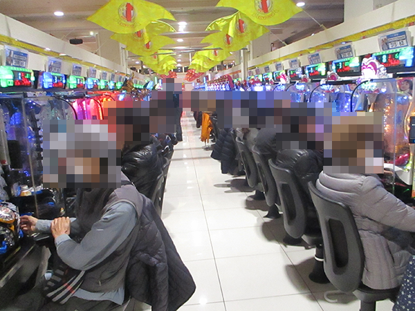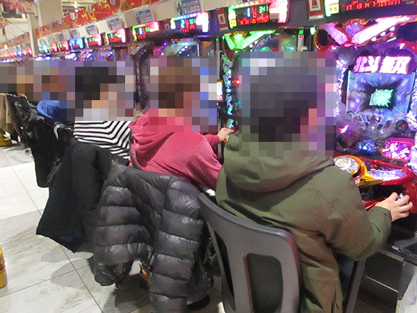 4円パチンコのなかでは、「ぱちんこCR真・北斗無双」と海物語シリーズが高稼働。うれしそうに遊技をおこなっている姿が多く、華やかな光景が広がっていた。