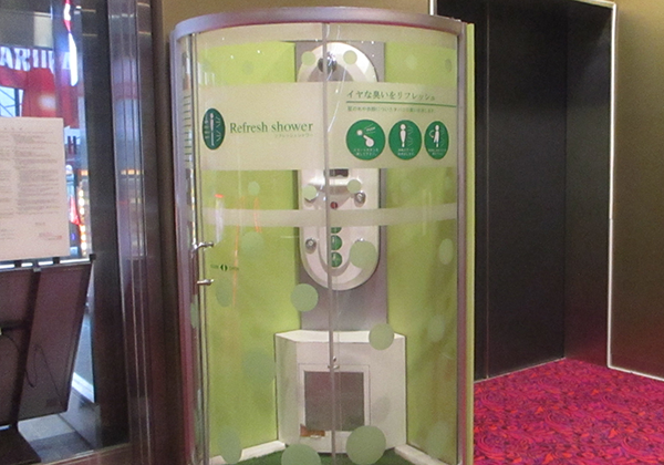 ホールに入って左側には、リフレッシュシャワーがある。服についたニオイをとることができるため、遊技を終えた際や休憩をする際に利用してみてもよいだろう。