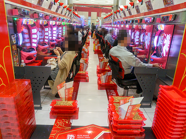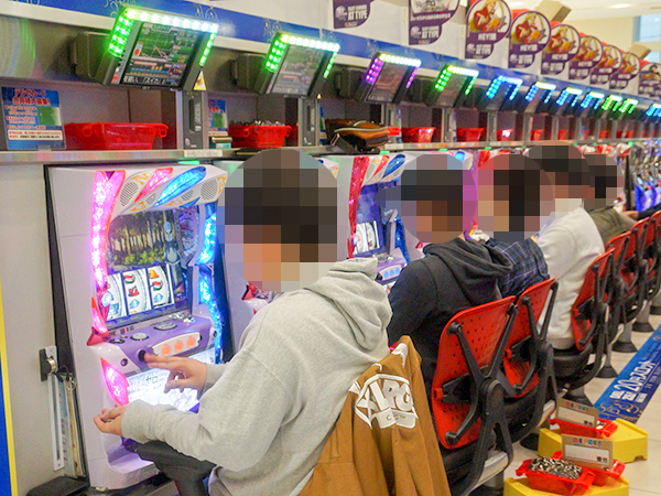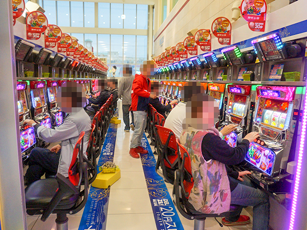 取材時には多くのプレイヤーが来店。パチンコ・パチスロともに活気が随所で感じられた。