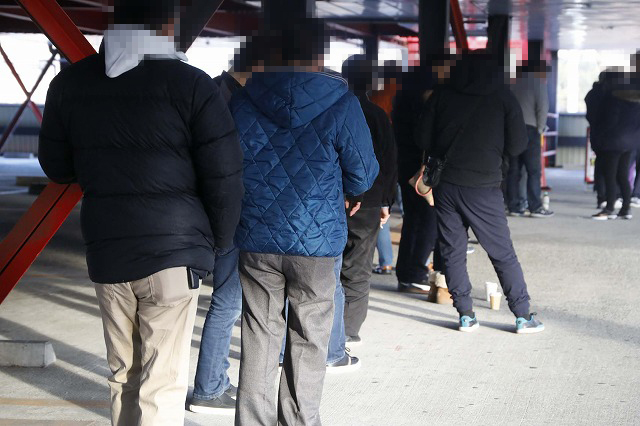 真冬の寒さもお構いなしで、朝から多くのファンが集う。