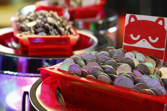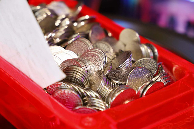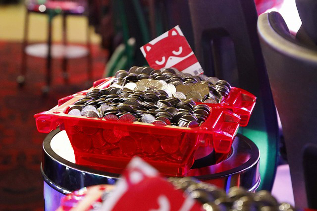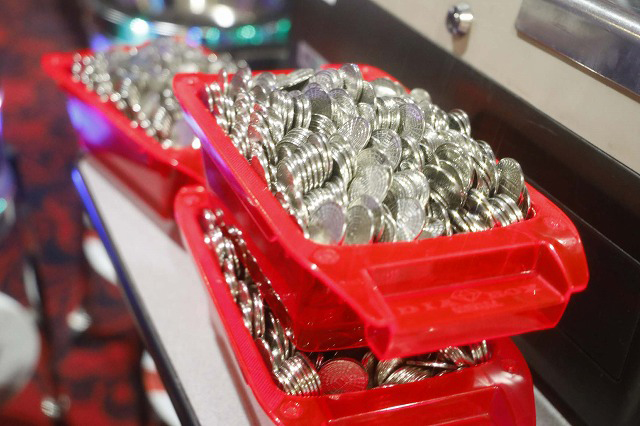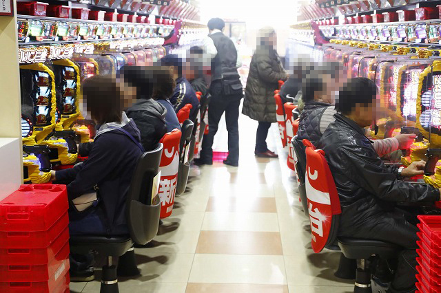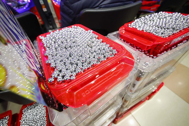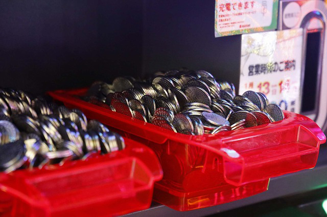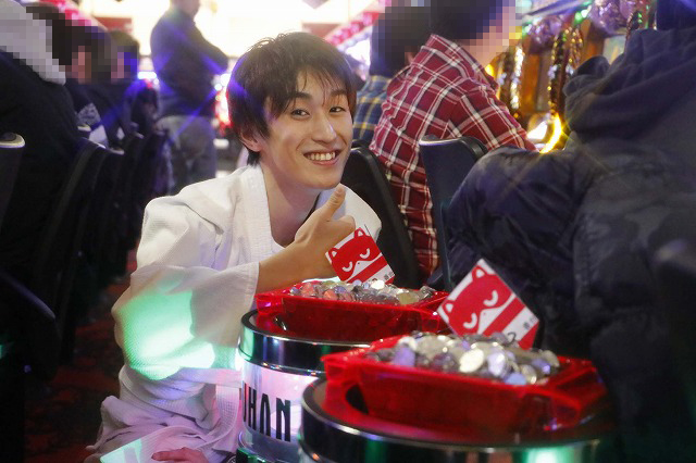 これだけの玉箱の山を目撃した後は、パチスロフロアの出玉は見劣りする…?