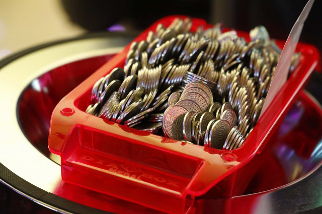 ギッシリとメダルが詰め込まれたドル箱が、みるみる増殖していく様は圧巻!