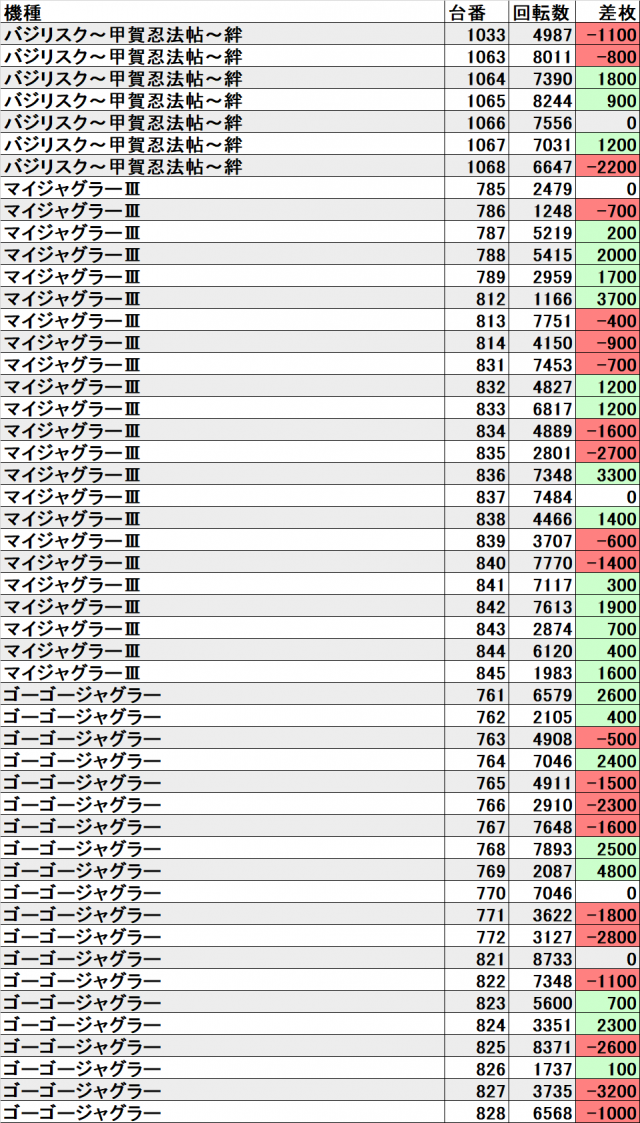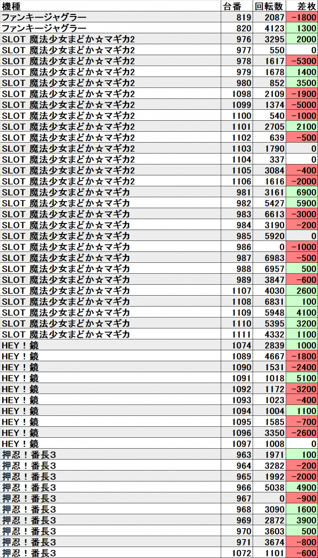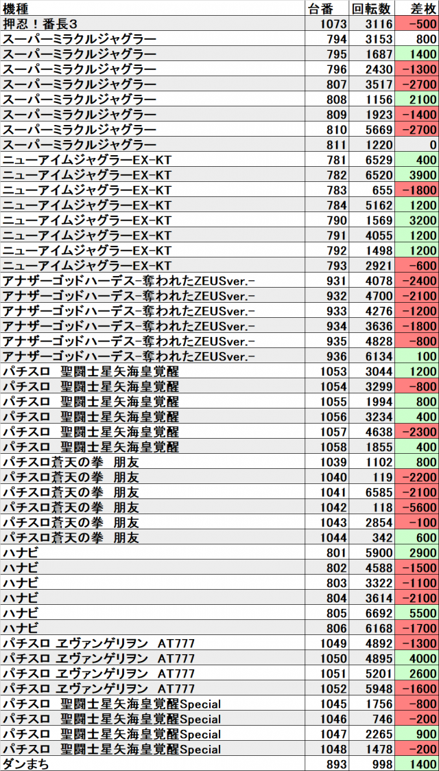 それでも『ジャグラー』シリーズがトータル+約16600枚といういい結果でした。