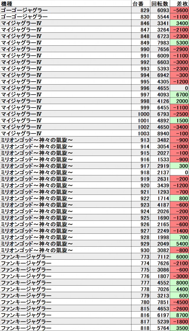 他にも『ニューアイムジャグラーEXーKT』は合計差枚+約3600枚で、『ゴーゴージャグラー』は合計差枚+約1500枚。