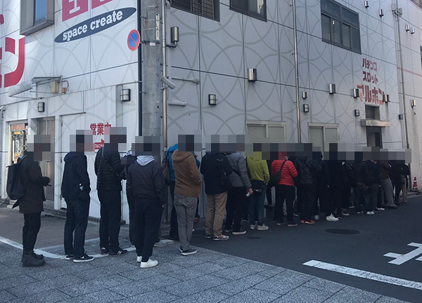 押上駅から歩いていける場所にあるホールとなっており、取材日は朝イチから50人前後のプレイヤーが来店。談笑している姿もみられ、待機場所は明るい雰囲気に包まれていた。