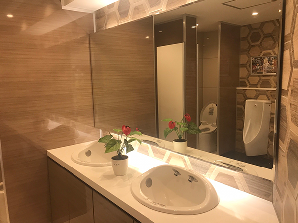 遊技台の周りはもちろんのこと、造花が飾られているトイレも清潔感がある。ホール内のすみずみまで清掃が行き届き、居心地のよい環境が整えられていることも、ホールが支持されている理由のひとつなのだろう。