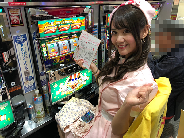周りのお客さまが笑顔で遊技をおこなっているなかで、まいちゃんも楽しそうに実戦中~。