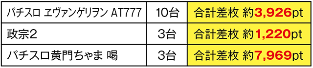 なんと3台の合計差枚ポイントが+7,969pt!
