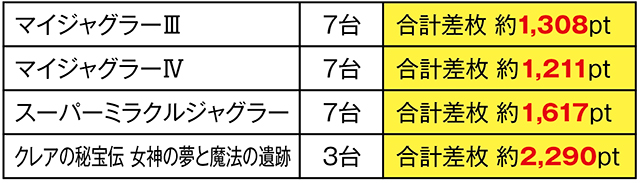各『ジャグラー』よりも高い機種平均ptを