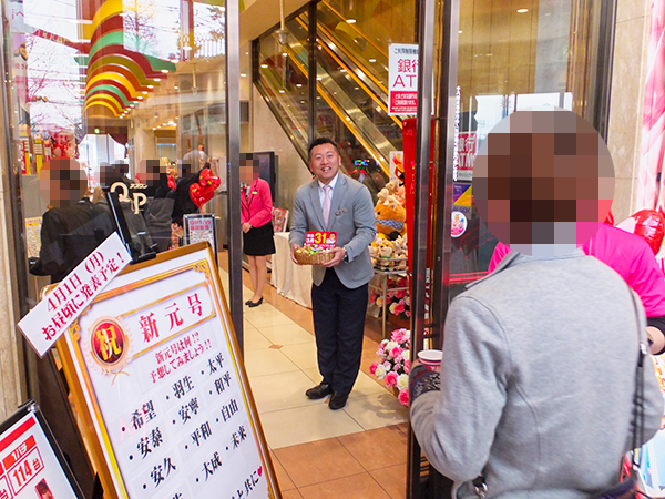開店前からおよそ70人のプレイヤーが集合。元気の良い挨拶でプレイヤーを出迎えるスタッフの姿が印象的だった。