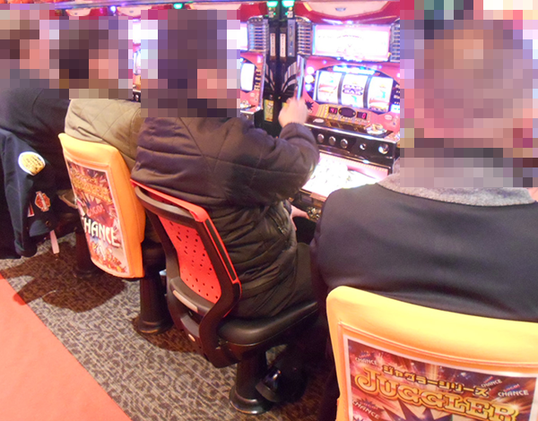 開店直後のホール内に足を踏み入れると、1階を埋め尽くしているジャグラーシリーズが人気を集めていた。