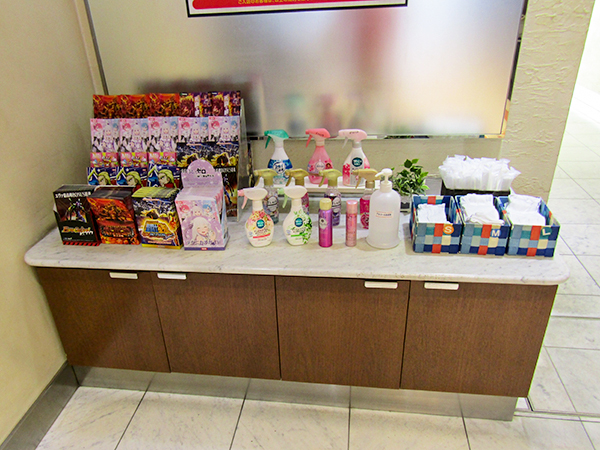 店内には手袋や消臭スプレーなどが用意され、より快適な環境で遊技を楽しめるようになっている。