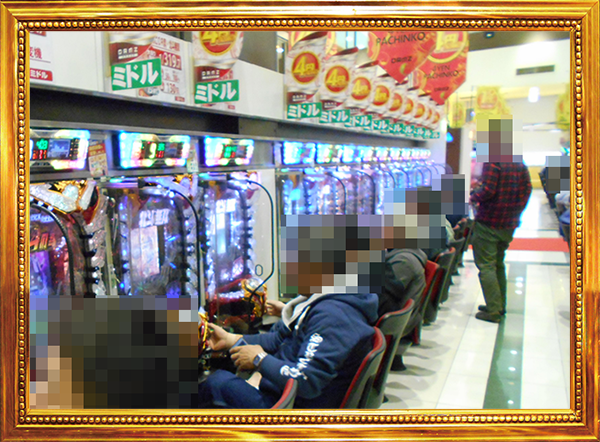 14時過ぎの店内は、パチスロを中心に大にぎわいとなっていた。