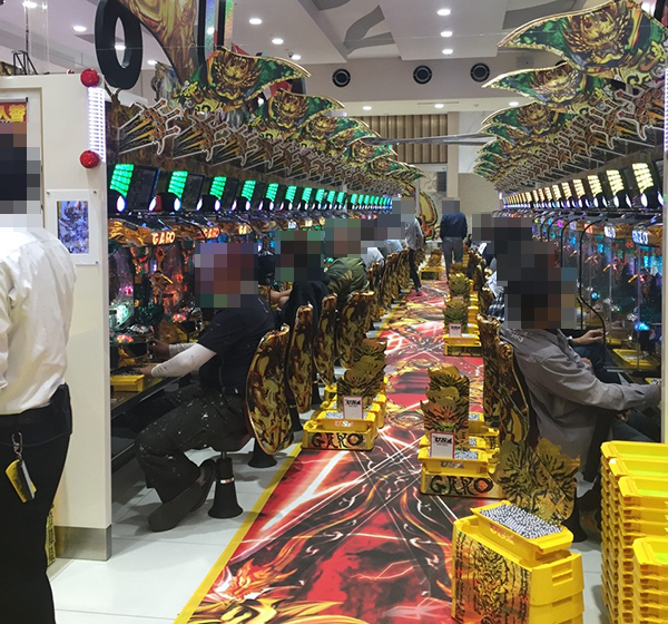 16時を過ぎた頃、4円(232玉/1000円)パチンコでは「CR牙狼 魔戒ノ花」などといった新台に多くのプレイヤーが集まっていた。