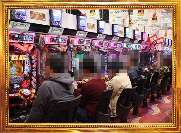 さまざまな機種が並んでいる4円パチンコでは、「ぱちんこCR真・北斗無双」の存在感が抜群。稼働率はおよそ7割と高く、プレイヤーたちがパフォーマンスを披露。活気のある明るい雰囲気となっていた。