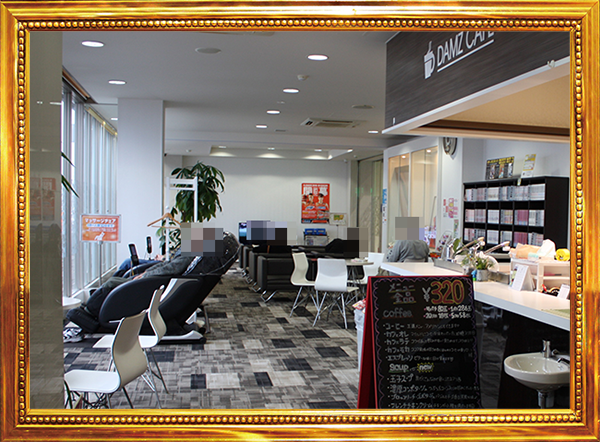 遊技スペースだけではなく、休憩スペースも清潔。カフェがあるため、ドリンクを飲みながらゆったりと休める空間となっていた。