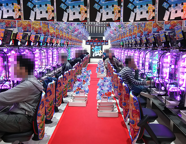 定番機種の海物語シリーズも支持されており、なかにはプレイヤーの笑顔を引き出すような光景もみることができた。