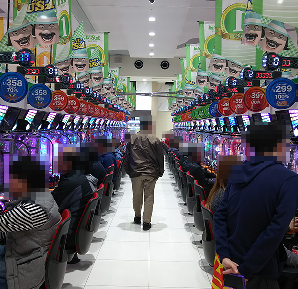 1円パチンコや5円パチスロといった低貸し玉コーナーもにぎわいは大きい。