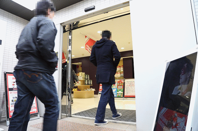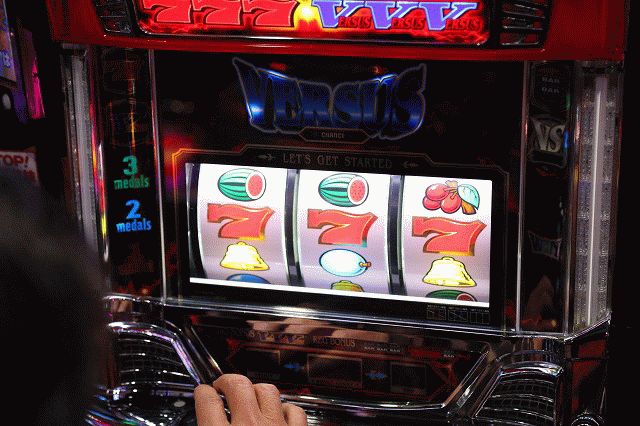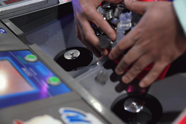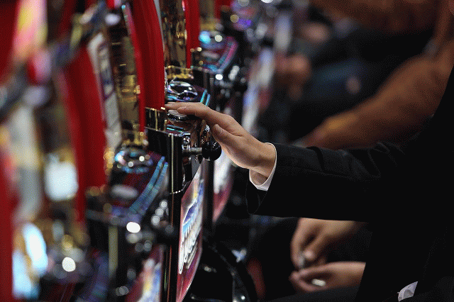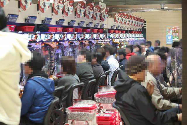 開店と同時に、パチスロファン達が勢いよくレバーを叩く!