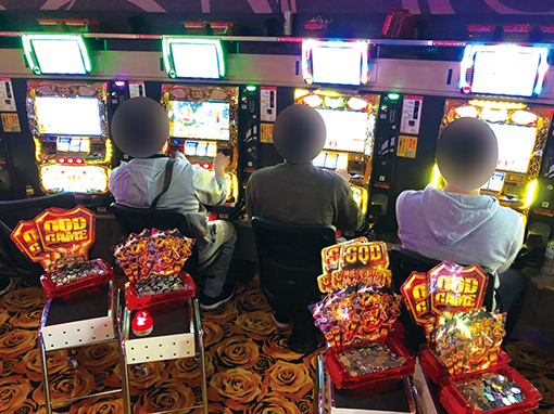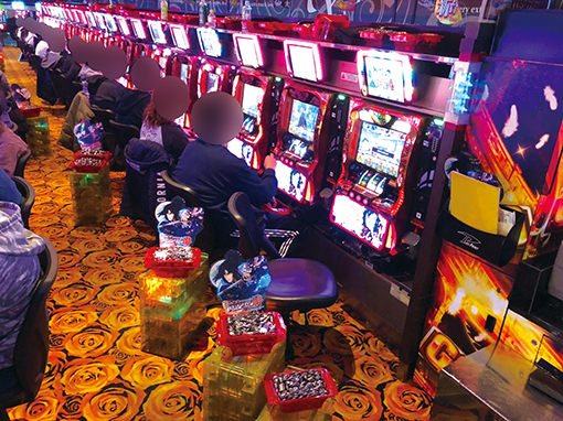 この日もパチスロコーナーは満員御礼。『ジャグラー』を筆頭に、『沖ドキ!』『バジリスク絆』『GOD』などの人気コーナーもご覧の盛り上がり!