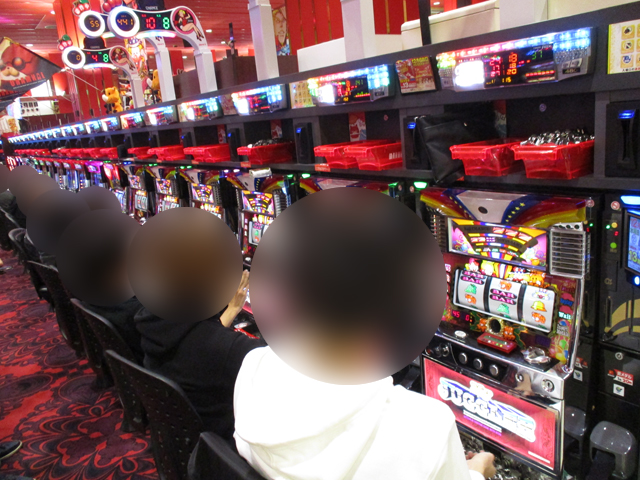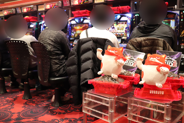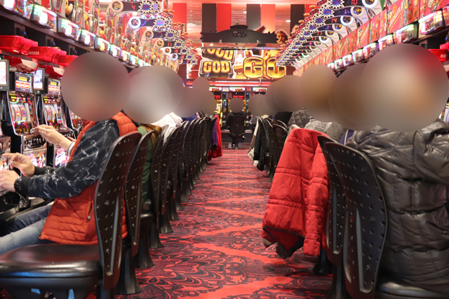 パチスロ・パチンコ両コーナーを埋め尽くし、既に熱気がムンムン。