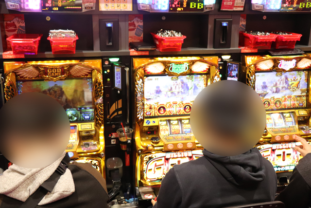 『マイジャグラーⅢ』では4千pt超が飛び出すなど全体的に高稼働で、年配の常連だけでなく若いプレイヤーの姿も目立つ盛況ぶりだった。