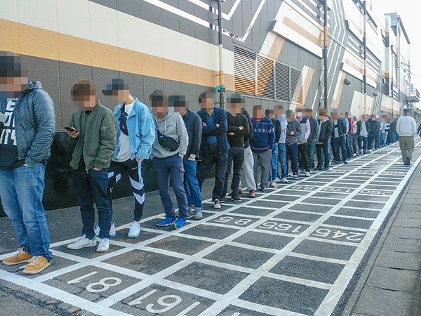 開店前から80人超のプレイヤーが集合。会話を楽しみながら開店を待つ、実に和やかなシーンを目にしている。