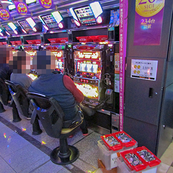 1000円/176枚パチスロのにぎわいも大きく、シマ全体がプレイヤーの熱気に包まれていた。