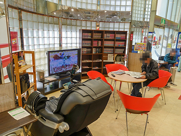 レストスペースにはテレビ・漫画本、さらにはマッサージチェアまでも用意されており、プレイヤーからの評価も高いようだ。