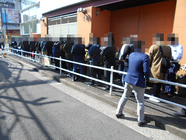 初日は朝イチから100名以上のプレイヤーが来店。人通りが多い大きな交差点の近くにあるため、ホールの前は混雑していたが、スタッフの丁寧な誘導によってスムーズに整列していた。