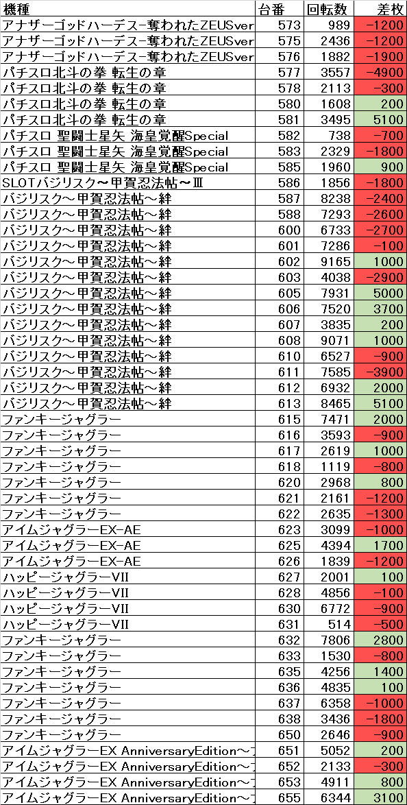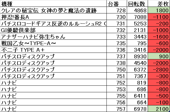 あまり回されてない台とかもあったので、もうちょっと回転数が欲しかったですね。