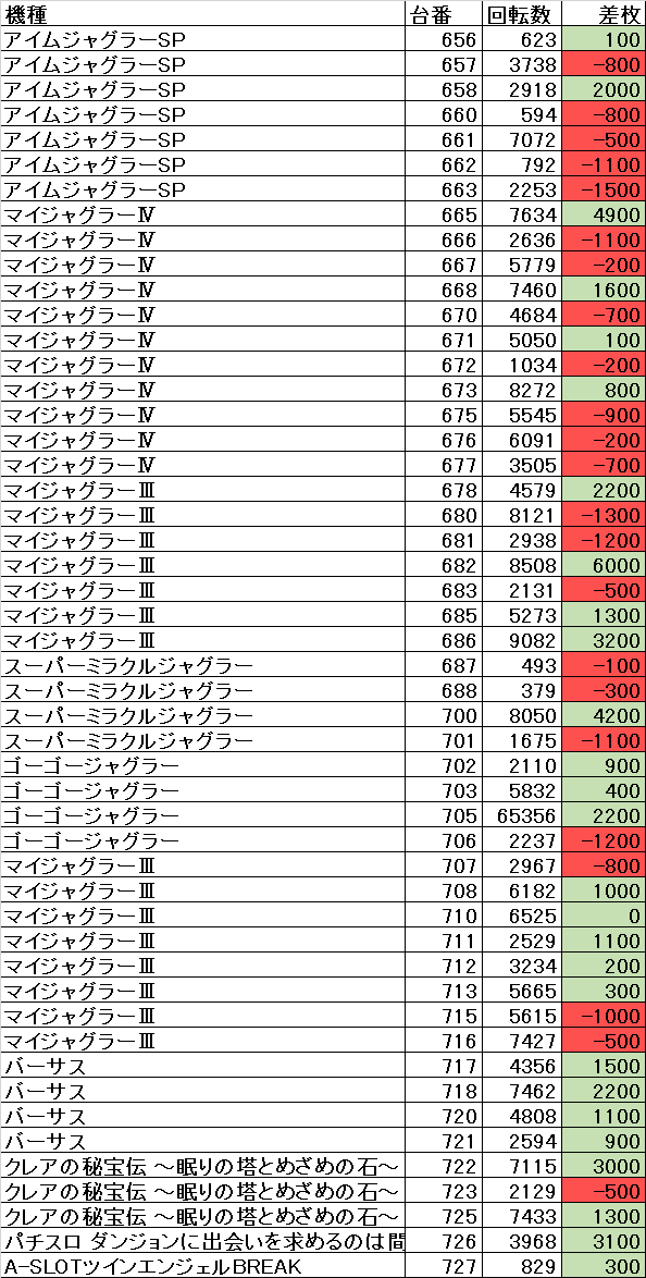 ジャグラー全狙いをしている常連さんもいたので、普段から良いのかもしれませんね。