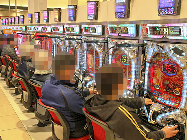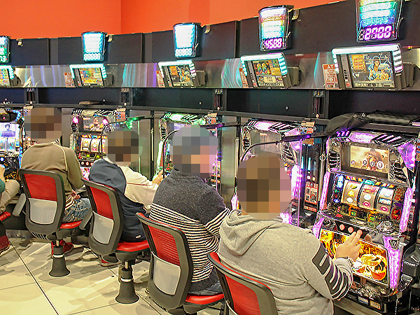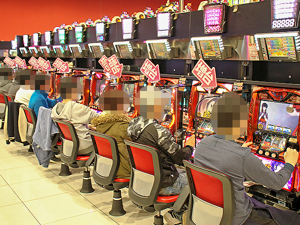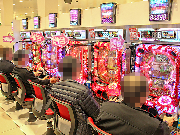 取材時の店内には既に多くのプレイヤーが集結し、パチンコ・パチスロを問わずにぎやかな状況となっていた。
