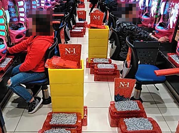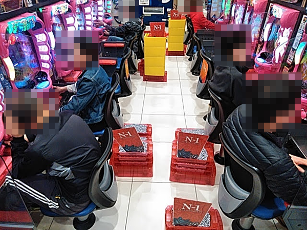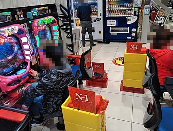 パチンココーナー全体にプレイヤーたちの笑顔が咲き誇っており、いたるところに明るいムードが広がっていた。