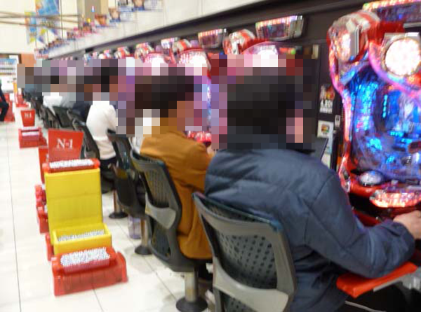 大勢のプレイヤーでにぎわっているパチンココーナーの様子をうかがうと、機種やスペックを問わずに、多くの場所が盛況となっていた。