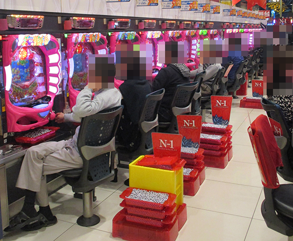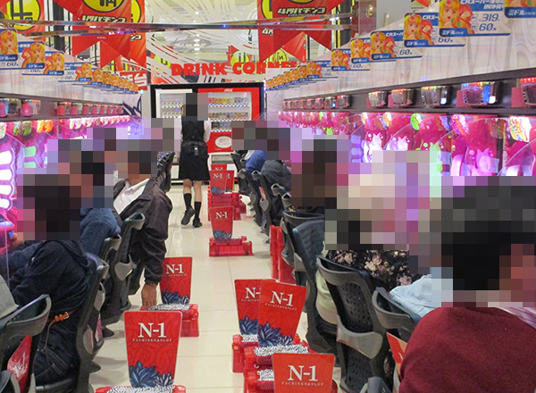 さまざまな機種が導入されているパチンコにおいて、海物語コーナーの存在感はひときわ大きく、たくさんの笑顔に囲まれている場所であった。