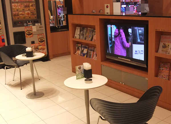 無料で使えるWi-Fiやテレビが設置されているレストスペースも魅力的。長時間、遊技を楽しみたいといったプレイヤーでも、快適に過ごせることじゃろう。