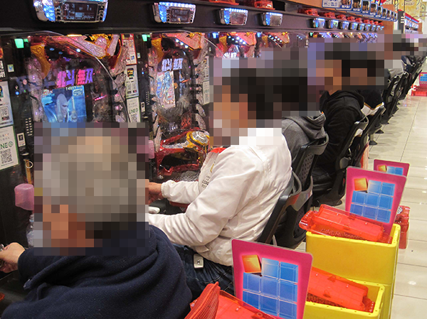 入店直後から退店するまで、どこにいても輝くような笑顔がみられた「エヌワン村上インター店」。「ぱちんこCR真・北斗無双」を中心に、龍の咆哮をイメージさせるほどの大きなにぎわいが感じられた。