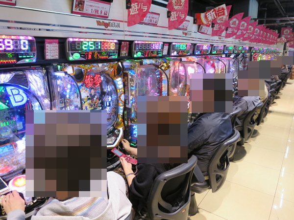 そのほかにも満席となっている機種は多く、「SLOT魔法少女まどか☆マギカ」や「パチスロ北斗の拳 強敵」といったAT・ART機を中心に活気づいていた。