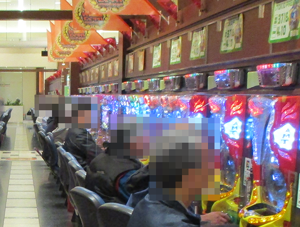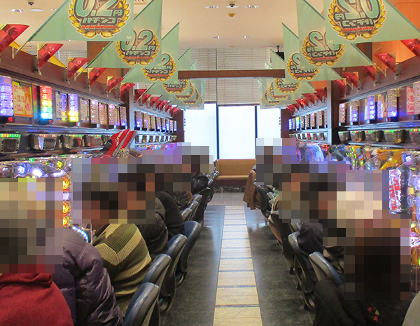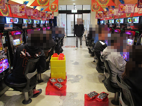 取材日である4月7日の店内は、パチンコとパチスロが合戦場のごとく盛況じゃった。