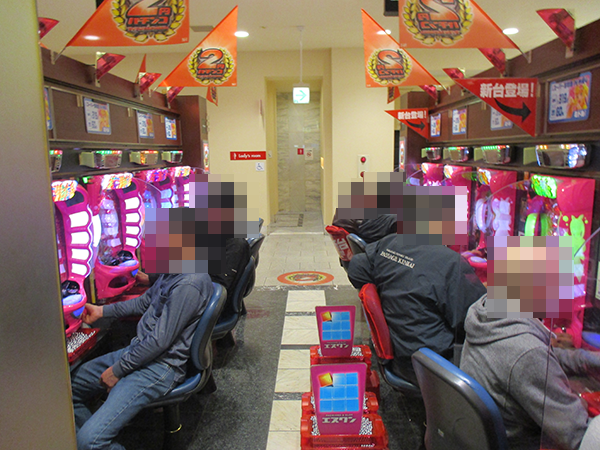 取材時はパチスロ全体の盛り上がりが大きく、プレイヤーは充実した時間を過ごしているように思えた。
