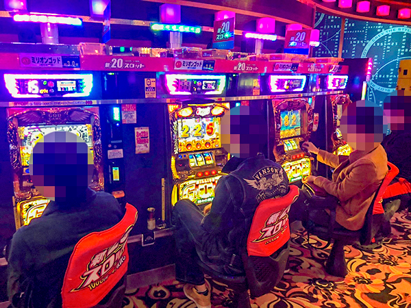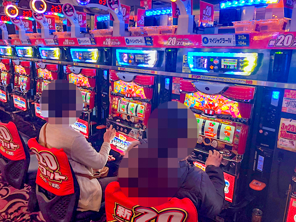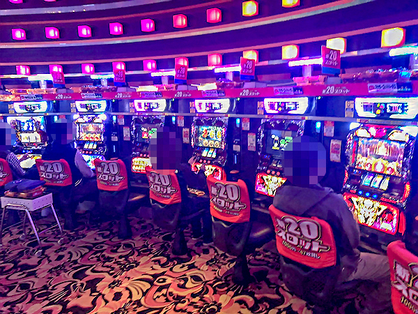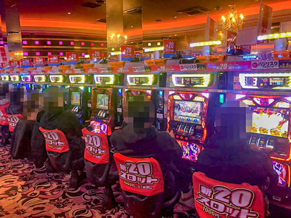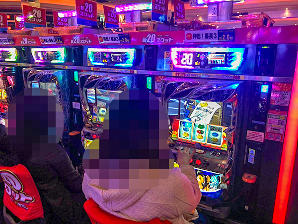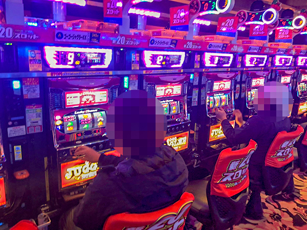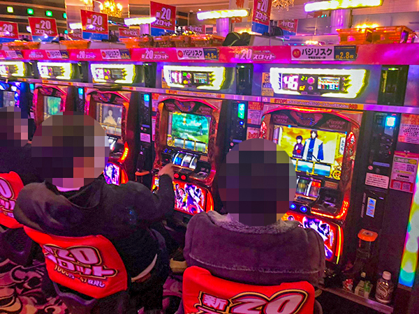 1000円/178枚パチスロの稼働も高い。楽しそうにレバーを叩くプレイヤーの姿を複数目撃している。