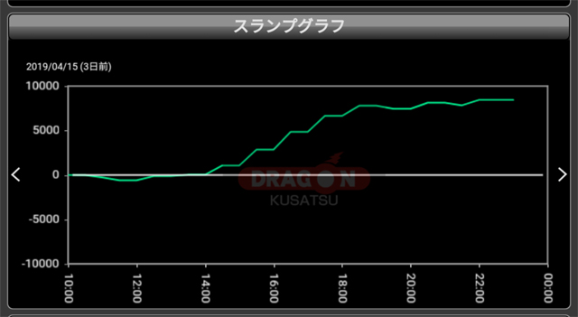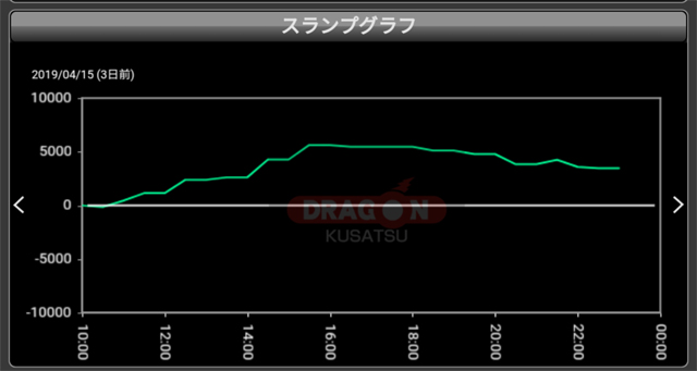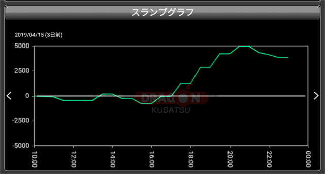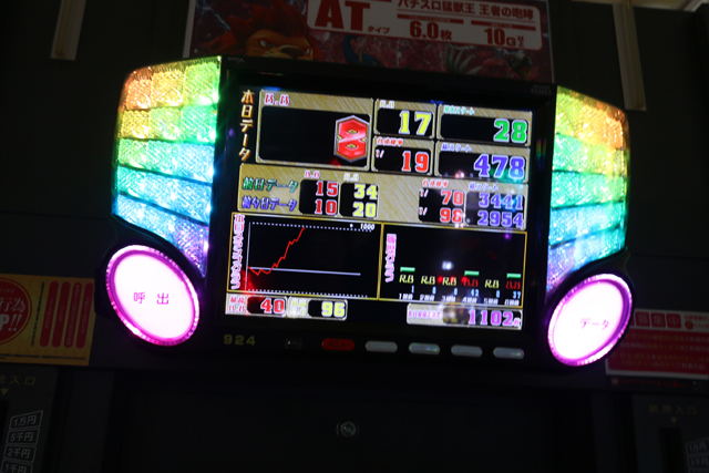 約4,000pt~8,000ptまで、総回転数と比例するように出玉を量産。終始グラフも右肩上がりだったことを考えると、穴場をツモったプレイヤー達が終日打ち込んだようだ。