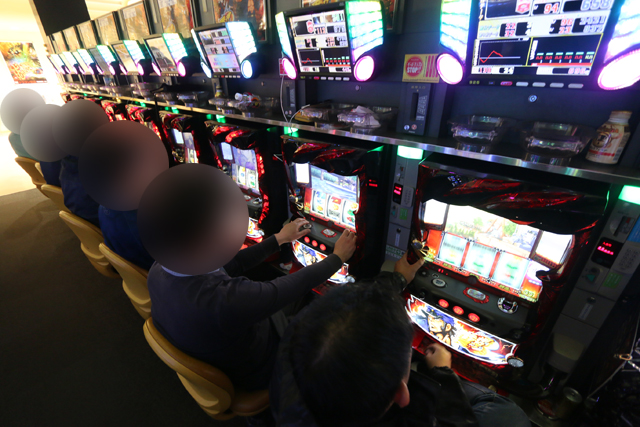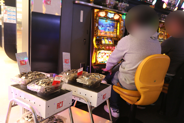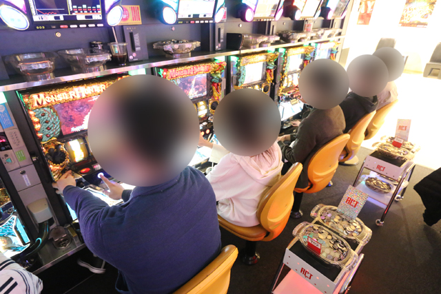 朝11:00くらいからジワジワと良い味が出だしたのが、『パチスロ モンスターハンター 月下雷鳴』だ。朝イチはチラホラだったにも関わらず、いつしか満台稼働かつ、全6台が下皿パンパン・カチ盛り状態に。