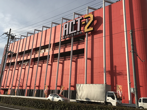赤い外観のホールには大型の立体駐車場が備えられている。大きな道路に面しており、車での来店がおこないやすいことはプレイヤーにとって、うれしいポイントだろう。