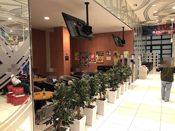 観葉植物が置かれているレストスペースの居心地も抜群。遊技中や休憩中など、1日を通して気持ちよく過ごせそうじゃ。