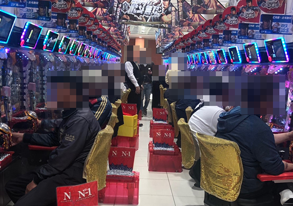 取材日となった4月27日の店内には、遊技という名の戦に参戦しているプレイヤーが多数! 大きなにぎわいが感じられるなかで、ひときわ目立っているコーナーを探しにゆくのじゃ!!