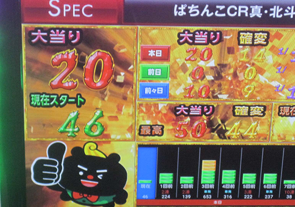 なかでも、とくに目立っていたのは18台が設置されている「ぱちんこCR真・北斗無双」だ。