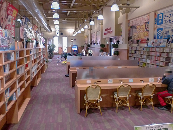 レストスペースには幅広いジャンルの漫画本が用意されており、取材時も満喫するプレイヤーが多かった。